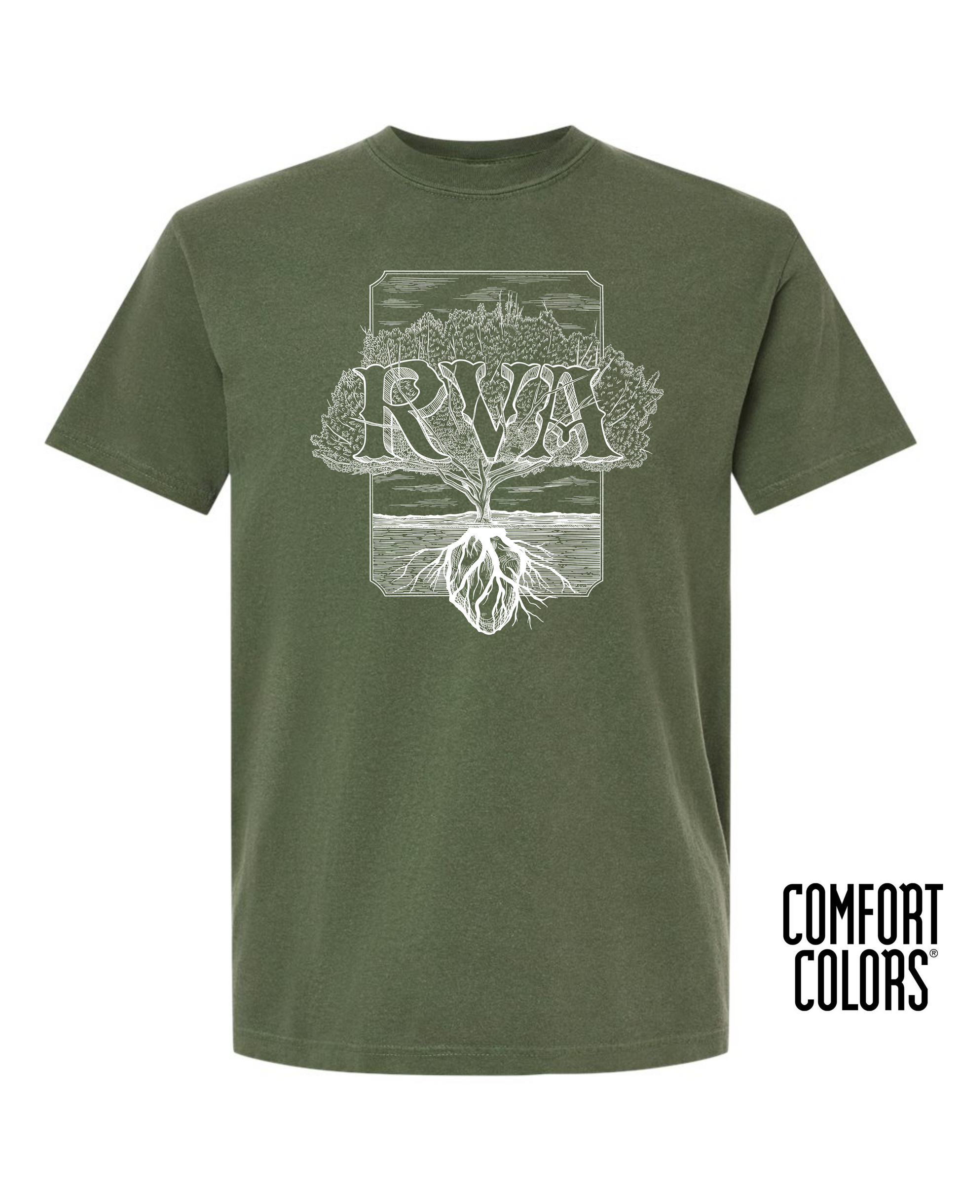 Hand screen printed on a super soft garment dyed Comfort Colors shirt.